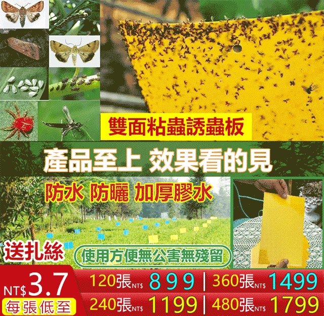 7分鐘前種菜養花不會用打農藥!物理防蟲「雙面粘蟲板」不怕水、不怕曬,粘性超強。花園、果園無需打農藥。室內,院子都可以使用! - 雙面粘蟲板 超值價 360張裝入僅需 NT$1499