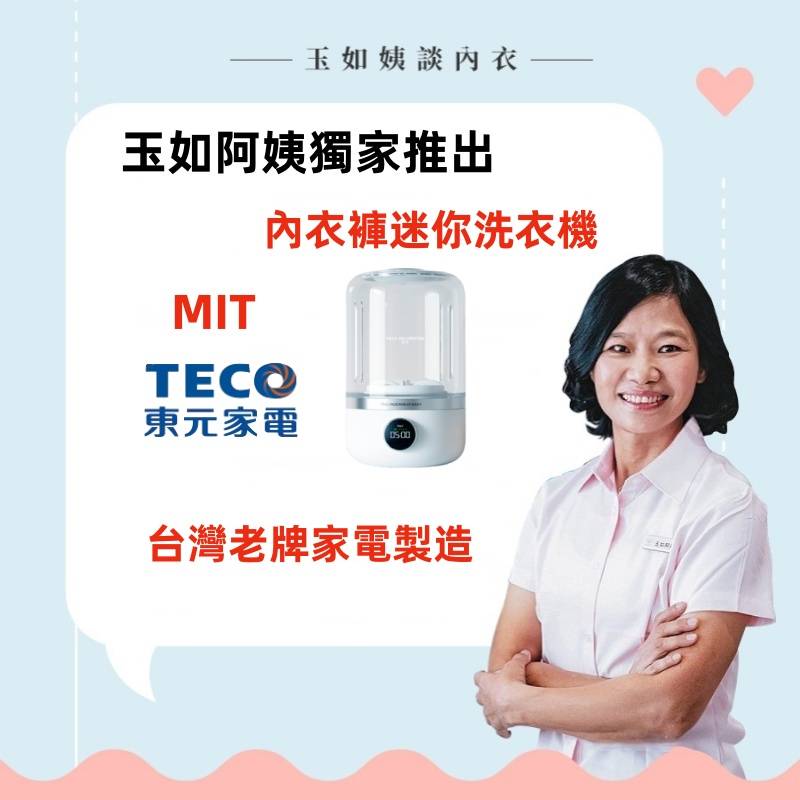 20分鐘前玉如阿姨獨家推出TECO迷你洗衣機,一鍵啟動解放雙手含銀離子持久抑菌,小巧機身功能齊全整機防水防潮防濕 - 內衣內褲分開洗 限時特惠 二入組NT$1990