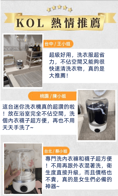 半小時前玉如阿姨獨家推出TECO迷你洗衣機,一鍵啟動解放雙手含銀離子持久抑菌,小巧機身功能齊全整機防水防潮防濕 - 內衣內褲分開洗 限時特惠 二入組NT$1990
